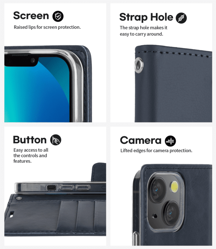 • A stylish wallet case designed with multiple credit card slots and a pocket for bills/receipts to eliminate the need to carry a separate wallet.
