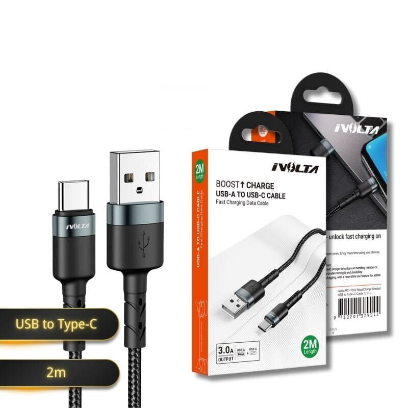 Bundle of 3x - iVolta [RC-101a] 3.0A BoostCharge 2m Braided USB to Type-C Cable