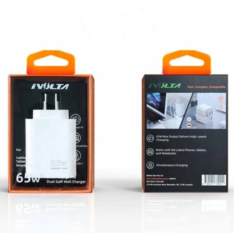 iVolta BOOST - GaN 65W USB-C PD + USB-A Wall Charger [Certified]