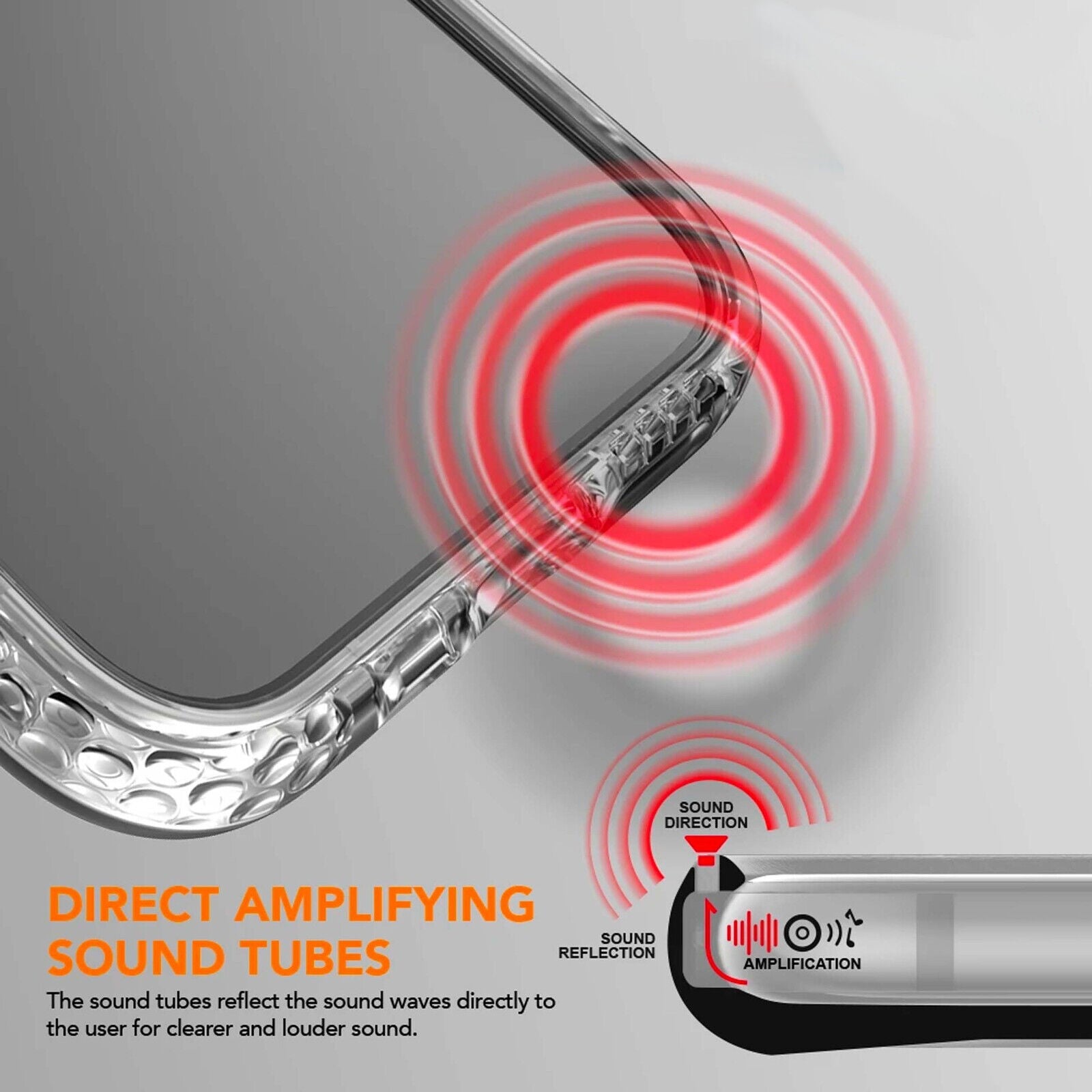 The sound tubes reflect the sound waves directly to the user for clearer and louder sound.
