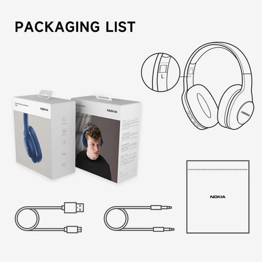 - With the Nokia Essential Wireless headphones, you can listen to music wirelessly for 40 hours, or connect the 3.5 mm cable to listen to it even longer.