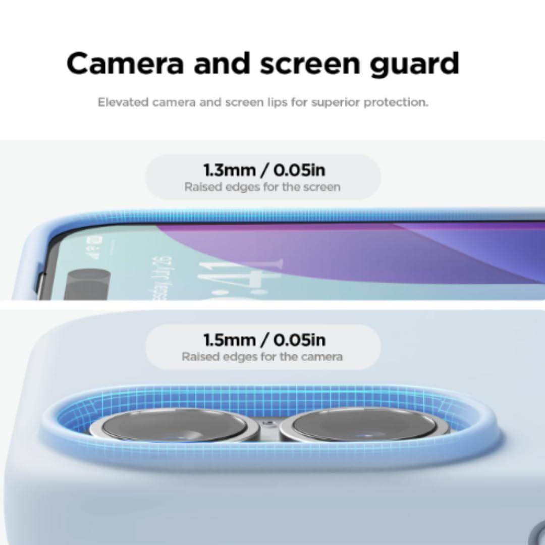 • Higher raised edges strongly protect the protruding camera and phone screen from drops, bumps, and face-up or face-down impacts.